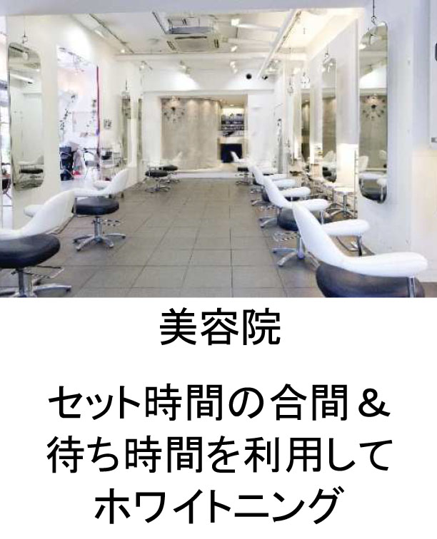 歯科で行われているホワイトニングとは違い、免許不要、資格不要で施術を行うことができる新しいセルフホワイトニングです。